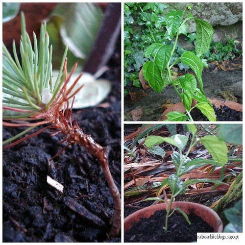 Mas não me quero dispersar. Estava, portanto, num dia a apreciar tudo o que me rodeia e toquei com o pé numa pequena planta. Pica!! E dei por mim quase a pisar um pequenino pinheiro. Era tão pequenino, tão bonito.. Fui invejosa e coloquei-o num vaso. Depois arrependi-me… Afinal, tinha acabado de o roubar só para mim. Rapidamente lembrei-me: talvez o tenha salvado de um provável atropolamento. Coisa que eu própria quase fiz. Sem querer – diga-se! Com estes pensamentos, alegrei-me e lá tratei da sua nova casinha.